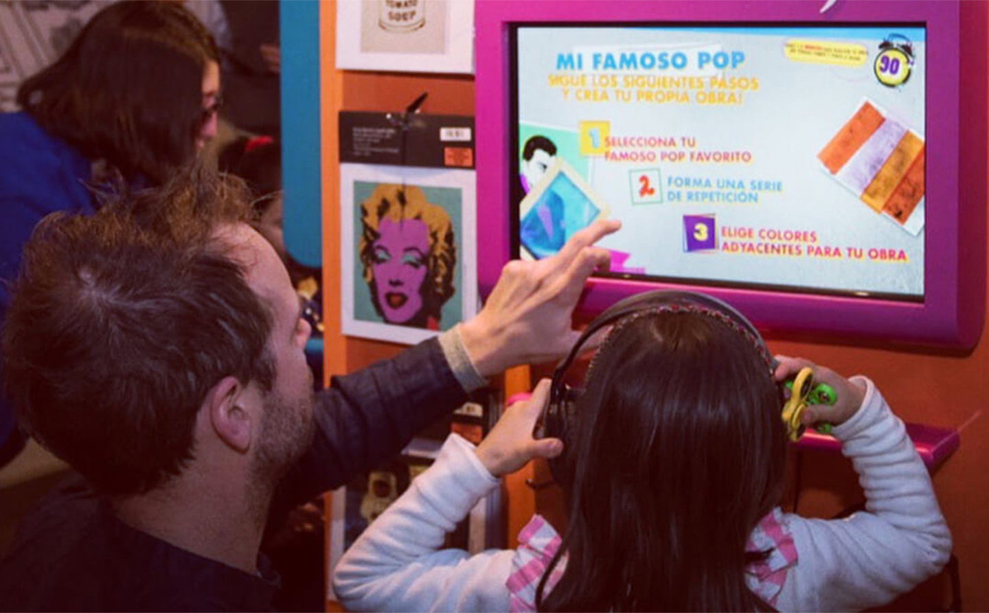 Para Fundación Mustakis desarrollamos Lo Más Pop de Andy Warhol, una experiencia interactiva donde las personas podían crear sus propias obras de arte pop en pantallas touch, replicando el proceso que utilizaba el artista en sus creaciones.